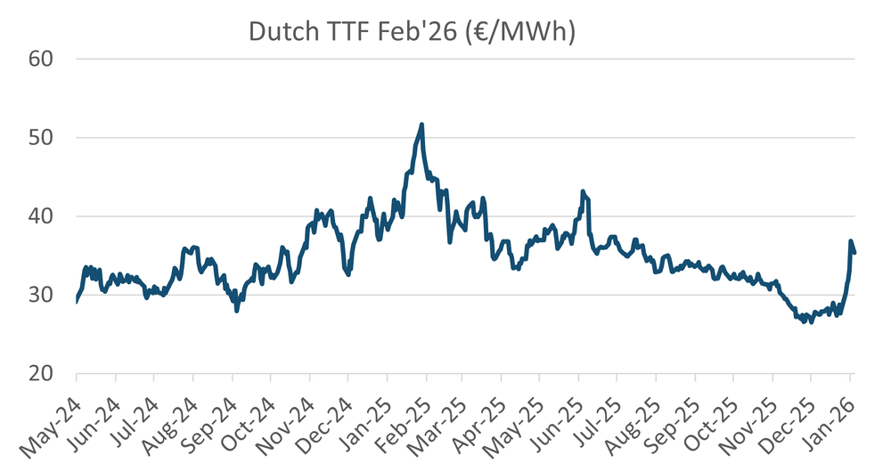 However, a severe cold snap across Europe and parts of Asia, increased heating demand and shrank EU storage levels to 53% of capacity, down significantly from last year, and around levels seen in 2022 when gas prices were at record highs. The cold weather led to a sharp increase in LNG demand and speculative funds rushed to short-cover.