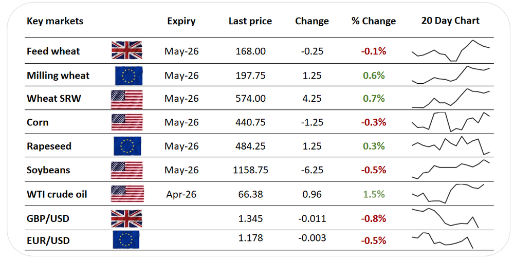 US wheat export sales of 107Kt for 2026/27, as starts in June in the US, exceeded market forecasts.